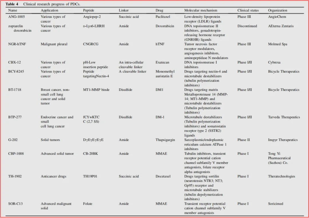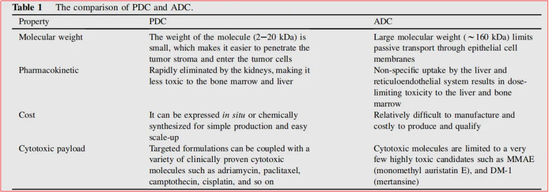 表1-1 肿瘤领域PDC结构中肽的特点