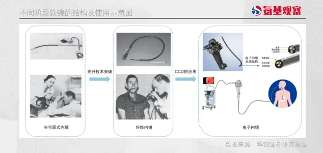 软镜技术的演进经历了三个时期:半可屈式内镜、纤维内镜、电子内镜。每一次技术的飞跃,都基于底层技术的革新。