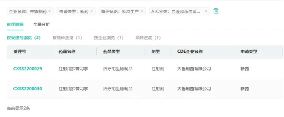 截图来源:药融云中国药品审评数据库