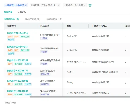 2024年至今,齐鲁制药已有氟尿嘧啶注射液、头孢克洛胶囊、头孢泊肟酯干混悬剂、注射用醋酸西曲瑞克、注射用阿扎胞苷、米拉贝隆缓释片、艾曲泊帕乙醇胺片7个品种过评。