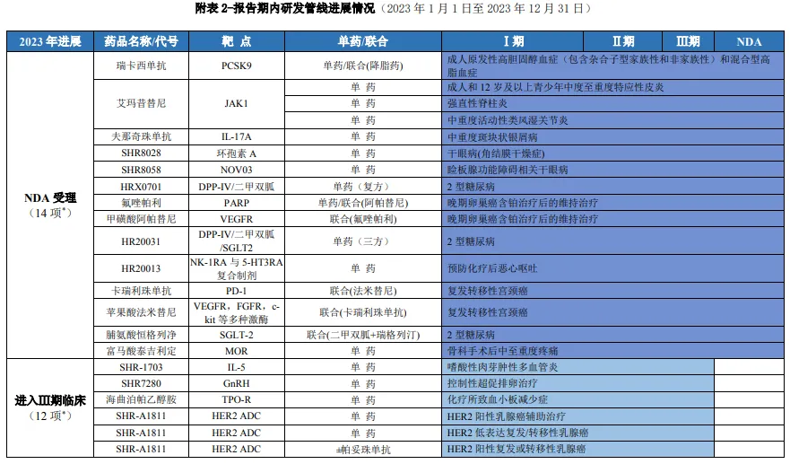图1 截至2023年12月31日,恒瑞医药部分管线进展 图片来源:恒瑞医药2023年财报
