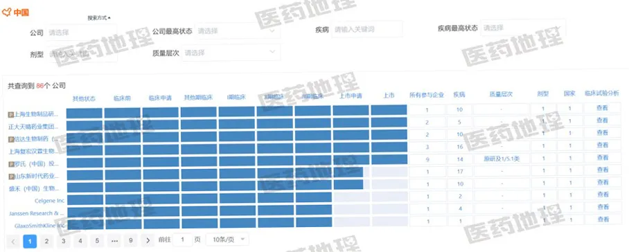 利妥昔单抗中国研发竞争格局 来源:Pharma ONE智能药物大数据分析平台
