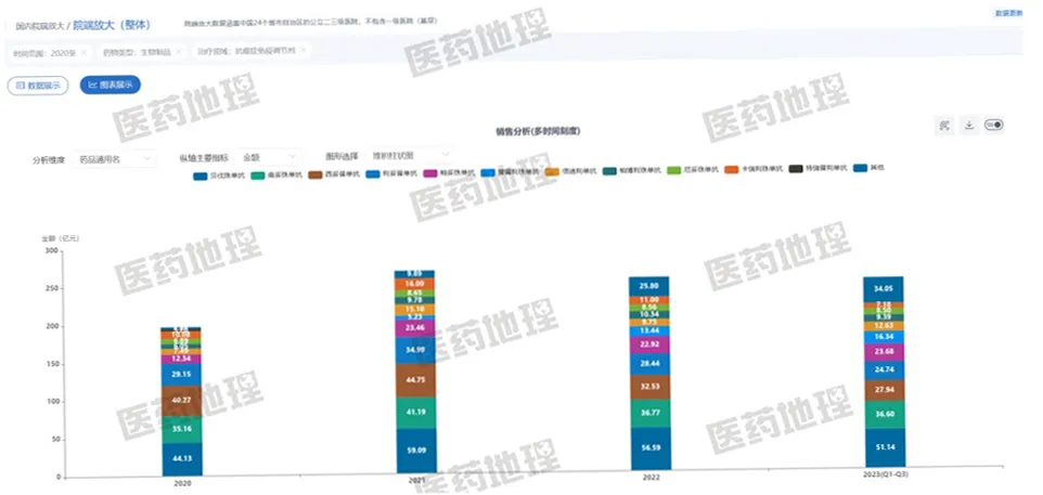 2020-2023抗癌症免疫调节剂的畅销药TOP 10 来源:PDB药物综合数据库,国内院端放大