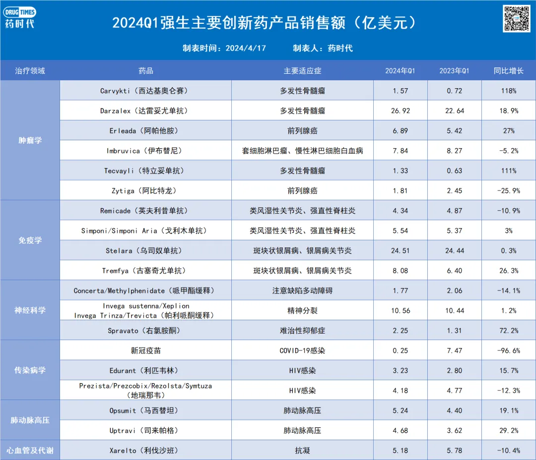 抗肿瘤业务的增长,主要得益于Carvykti(西达基奥仑赛)、Darzalex(达雷妥尤单抗)、Erleada(阿帕他胺)以及Tecvayli(特立妥单抗)的销售额拉动。