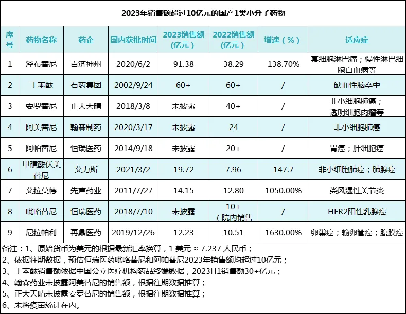 2.《2023年成绩单:销售额超10亿元的国产1类创新药》,猎药人俱乐部,2024-04-15》