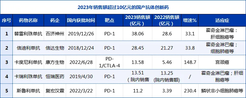 4款PD-1单抗,销售额超10亿元