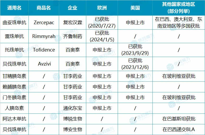 国产生物类似药出海情况