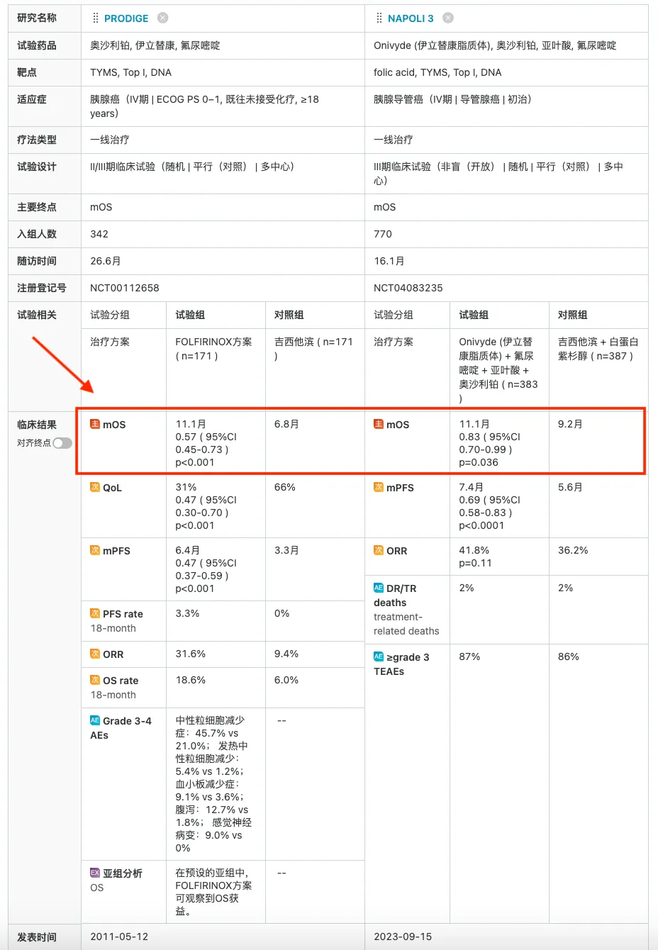 2023年ASCO胃肠道肿瘤研讨会上,公布了NAPOLI-3结果。这项RCT将晚期胰腺癌患者分配到一线接受NALIRIFOX(伊立替康脂质体、氟尿嘧啶、亚叶酸钙和奥沙利铂)或吉西他滨加白蛋白紫杉醇。同样,NALIRIFOX和FOLFIRINOX之间的唯一区别是使用昂贵的伊立替康脂质体而不是通常的伊立替康。如果伊立替康脂质体确实优于伊立替康,试验应该比较NALIRIFOX和FOLFIRINOX,而不是吉西他滨加白蛋白紫杉醇。对于能够耐受者,FOLFIRINOX一直是首选的治疗标准,而不是吉西他滨加白蛋白紫杉醇。有意思的是,NAPOLI-3中使用NALIRIFOX的中位OS与2011年FOLFIRINOX试验中使用FOLFIRINOX的中位OS相同:11.1个月。