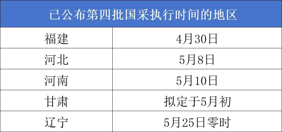 自河南率先官宣执行时间后,第四批国采落地按下了“加速键”。