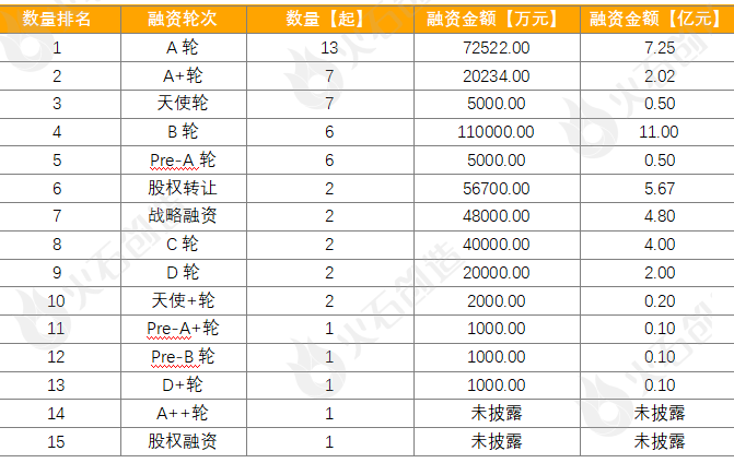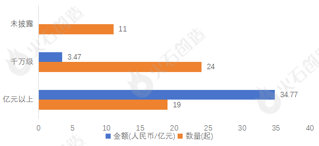 从融资额度来看,本月54次融资事件,其中单笔融资金额在亿元以上的融资事件为19起,合计融资金额约34.77亿元,占本月融资规模总额的90.92%。