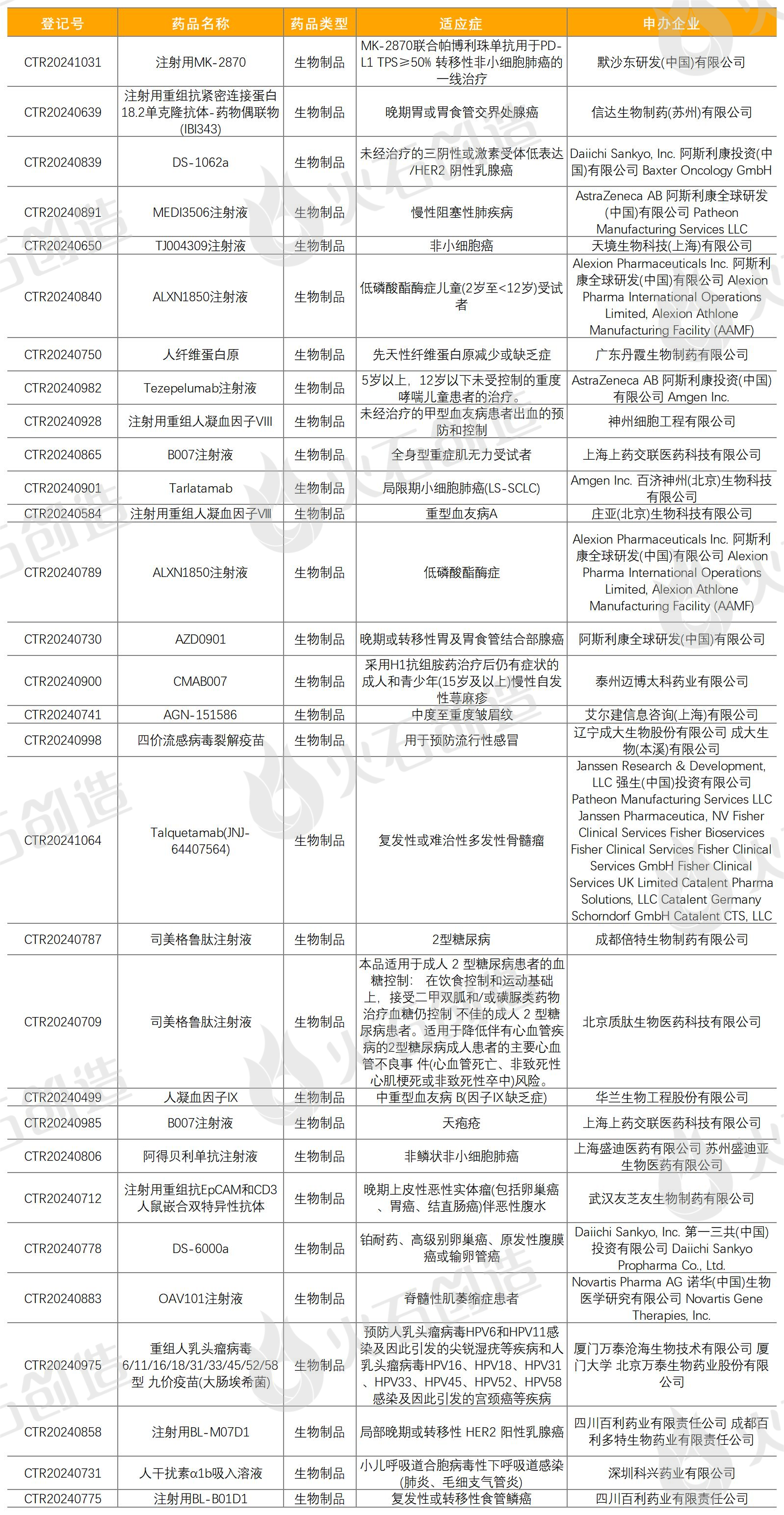 2024年3月,全国共有377个产品获批临床,和上月相比,增长了47%。其中化药领域261个,中药领域2个,生物药领域114个。