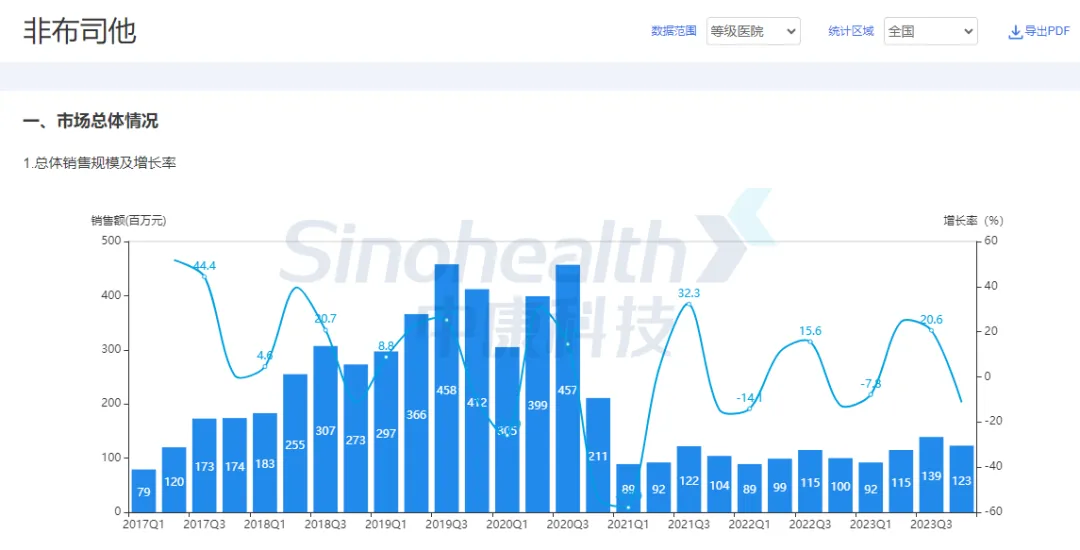 非布司他全国等级医院市场情况