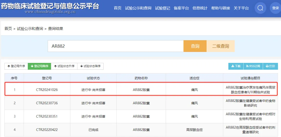 另据国家药审中心旗下药物临床试验登记与信息公示平台显示,近日一品红AR882胶囊启动了对比非布司他片治疗原发性痛风伴高尿酸血症患者的有效性和安全性的多中心、随机、双盲、平行对照、II/III期临床试验。