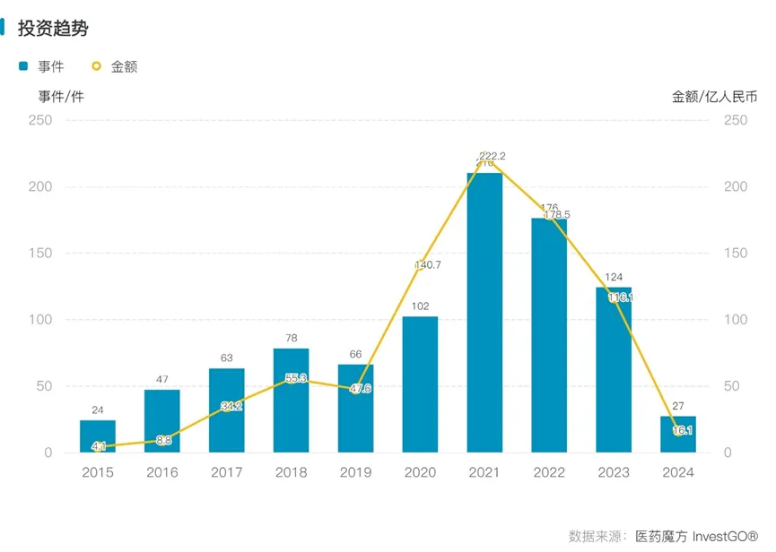 近年来,研发生产外包需求冲高回落,叠加《生物安全法案》等地缘政治摩擦事件带来的冲击,CXO板块的龙头公司股价持续震荡,一级市场投融资趋势也冲高回落。