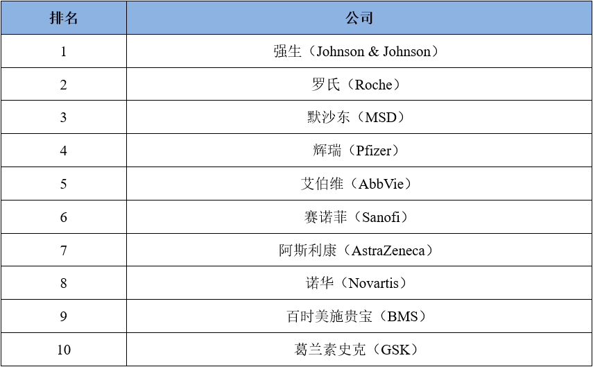 表1.2023年度全球药企收入排行TOP1-TOP10