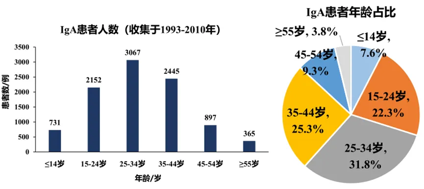 IgA肾病(IgAN)是一种以免疫球蛋白A(IgA)为主的免疫复合物在肾小球系膜区沉积为特征的肾小球疾病,也是全球范围内最为常见的原发性肾小球肾炎[1]。Frost&Sullivan的研究数据显示,中国是全球原发性肾小球疾病发病人数最多的国家,有约220万患者,发病人数持续上升的同时,几乎所有IgA肾病患者在其预期寿命内均有进展为终末期肾病的风险。此外,由于IgA肾病高发于25-39岁的青壮年[2,3],疾病所带来的生理、心理压力以及经济负担无论对患者及其家庭还是对社会都带来严重影响。