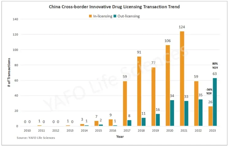 2023年,中国对外授权交易数量首次超过对内授权交易数量,这表明中国创新生物技术被越来越多的跨国药企认可。