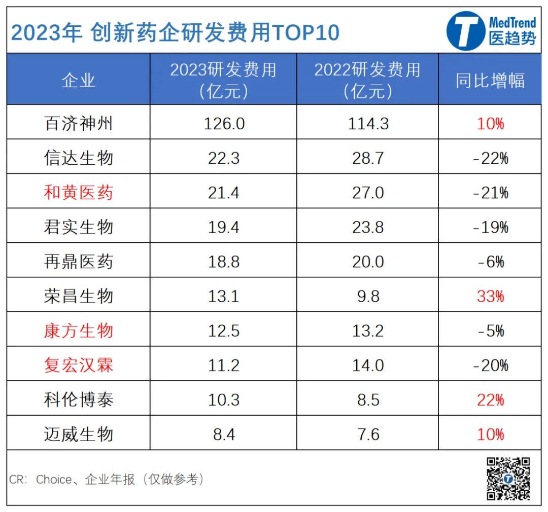 和黄医药、康方生物2023年研发投入都非常高,位居前十,花费数十亿元,而在BD首付款加持下也成功实现了盈利。