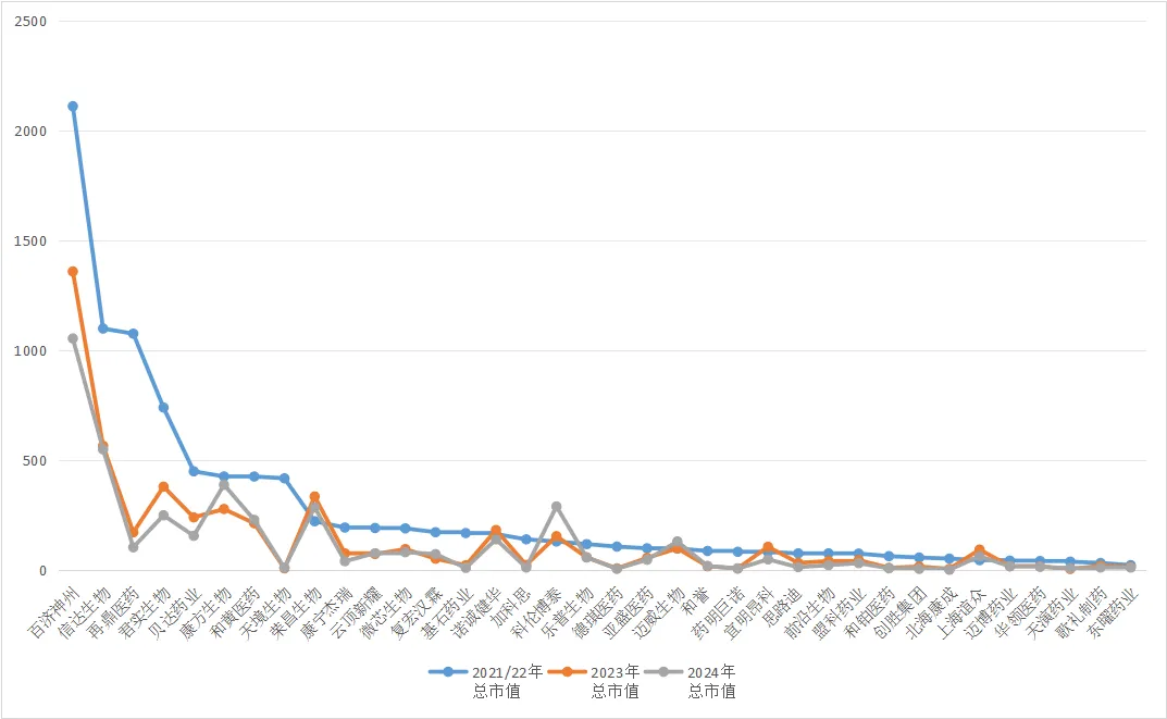 部分中国创新药企近三年市值变化