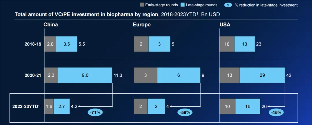 主要是生物医药领域的后期投资回落到2020年前水平,而早期投资的势头依旧。