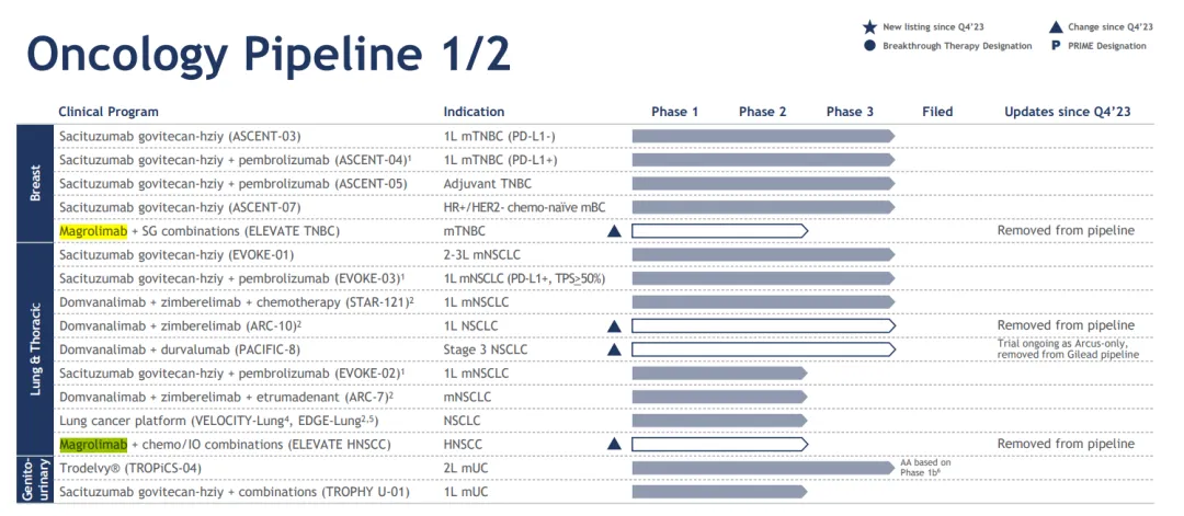 吉利德在Q1财报中披露,已将CD47单抗magrolimab的6项试验从管线中剔除。包括magrolimab联合疗法治疗头颈部鳞状细胞癌、三阴性乳腺癌、结直肠癌等多项实体瘤研究和血液瘤试验,也意味着其彻底放弃了这款药物的研发。