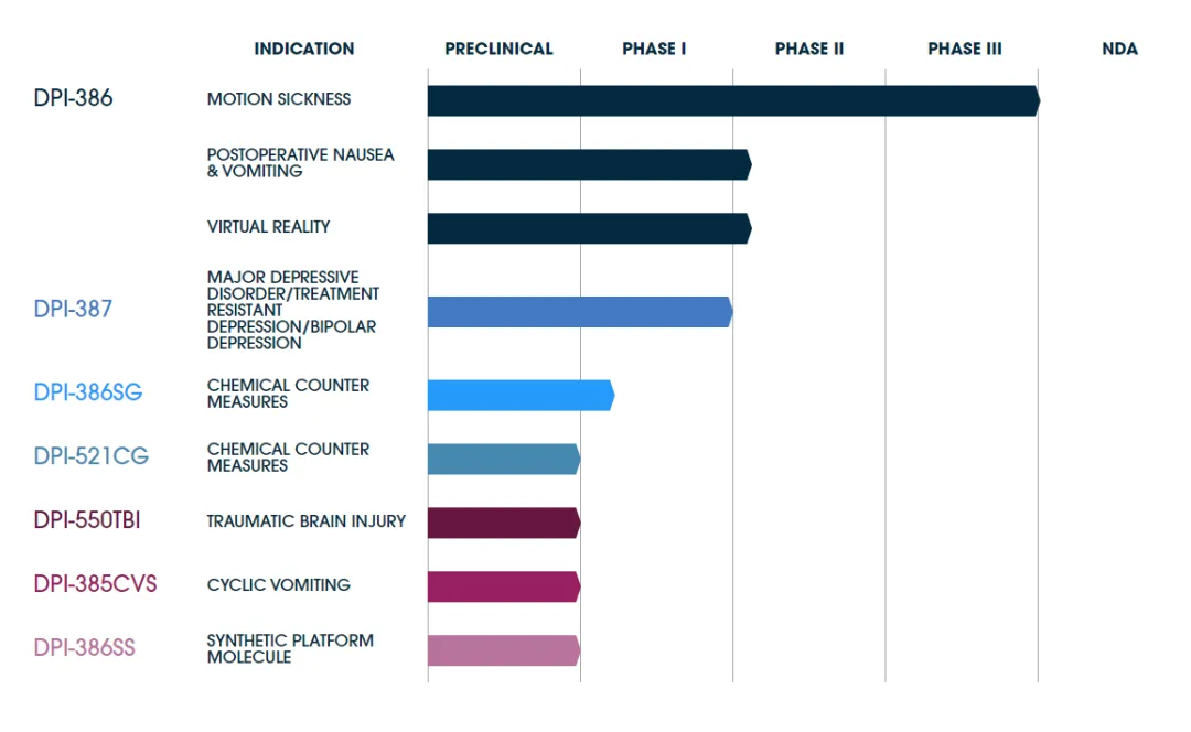 DPI-386凝胶在一项3期、双盲、安慰剂对照研究(NCT05548270)中进行了评估,该研究包括约500名在海上航行中暴露于运动的成年人。研究参与者被随机分配到自行服用东莨菪碱鼻用凝胶(每0.12克凝胶含0.2毫克东莨菪碱HBr)或安慰剂组。研究结果显示,与安慰剂组相比,鼻内东莨菪碱组未报告呕吐和未请求抢救药物(主要终点)的患者比例显著更高。