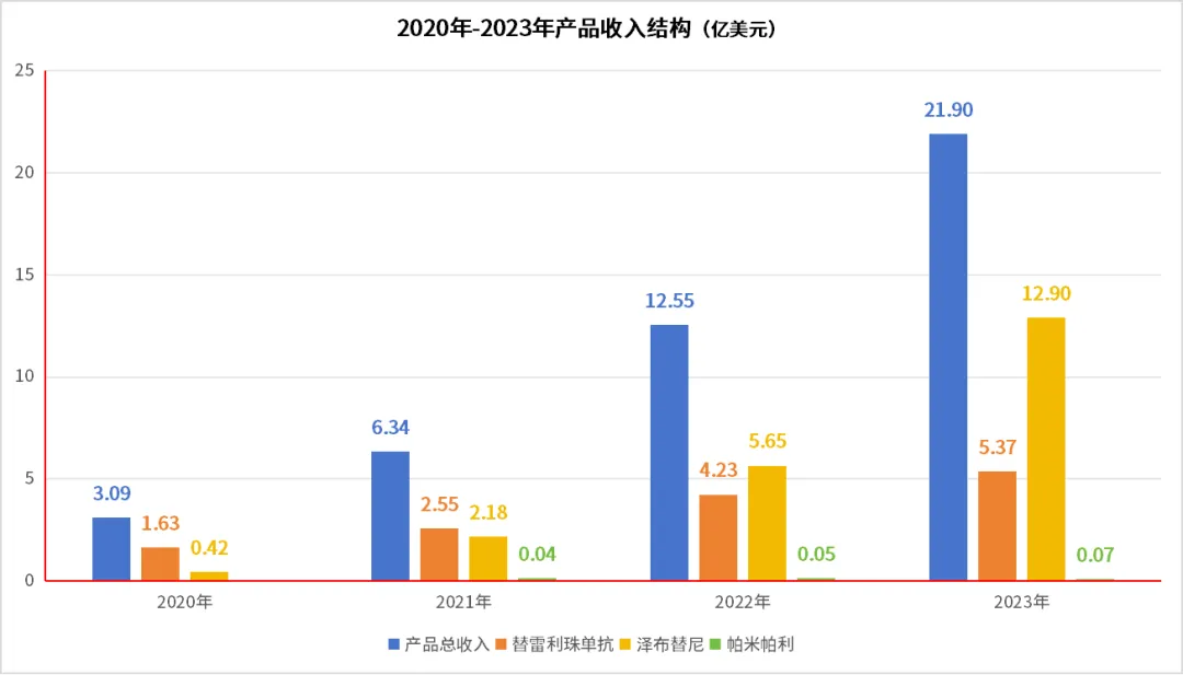 值得一提的是,百济神州自研产品让其营收结构发生了根本性且持续向好的转变,3款自研产品合计收入已由2020年占产品总收入的66.34%增长至2023年的83.74%,且3款自研产品年度收入均持续增长。
