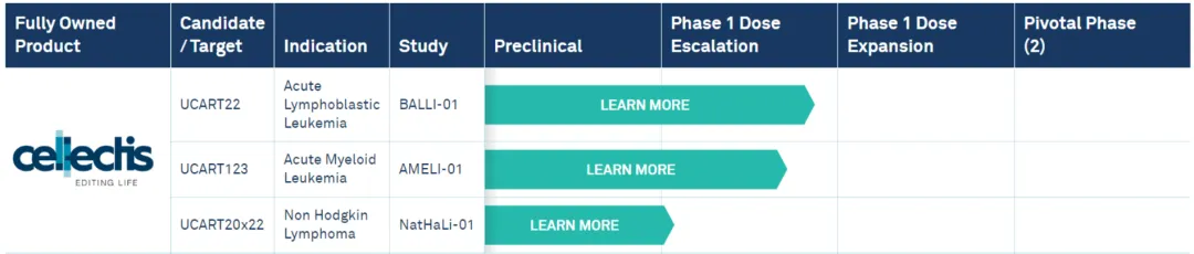 ▲ Cellectis UCAR-T在研管线技术平台(图片来源:官网)