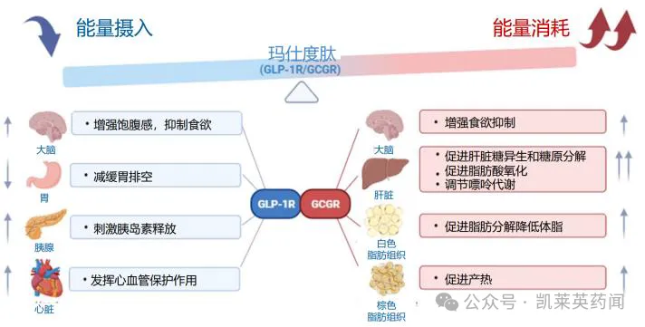 玛仕度肽是信达与礼来共同开发的一款GLP-1R/GCGR双重激动剂,两家公司于2019年达成合作,在中国共同开发和商业化该候选药物。作为一种哺乳动物胃泌酸调节素(OXM)类似物,玛仕度肽除了通过激动GLP-1R促进胰岛素分泌、降低血糖和减轻体重外,还可通过激动GCGR增加能量消耗增强减重疗效,同时改善肝脏脂肪代谢。