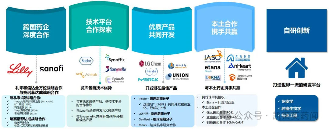 公司与海内外药企深入合作加速药物创新,与礼来、罗氏、赛诺菲、Adimab、Incyte和MD Anderson癌症中心等国际合作方达成30多项战略合作。