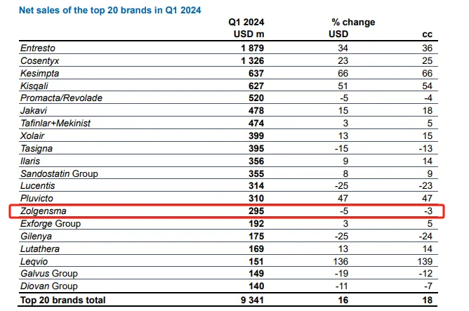 2019年7个月Zolgensma销售额达3.61亿美元;2020年营收为9.2亿美元,同比增加150%;2021年Zolgensma营收13.51亿美元,同比大增47%;2022年营收13.7亿美元,微增1%。2023年,Zolgensma销售额为12.14亿美元,同比下降11%。2024 Q1 Zolgensma销售额2.95亿美元,同比下降5%。