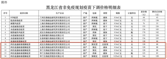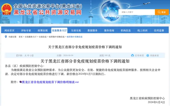 6月4日,黑龙江省公共资源交易网发布《关于黑龙江省部分非免疫规划疫苗价格下调的通知》,对部分非免疫规划疫苗价格进行下调。文件显示,华兰生物的四价流感疫苗(预充式)中标价格由128元/支降至88元/支。