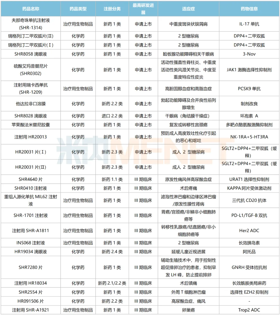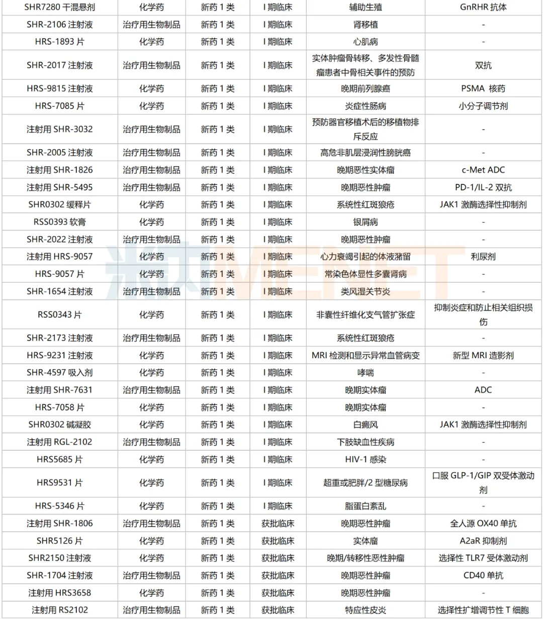 通过与多家药企合作,恒瑞医药将卡瑞利珠单抗、吡咯替尼、SHR2554、SHR-1701、SHR-1905、SHR0302、SHR-A1904、HRS-1167、HRS-7535、HRS9531、HRS-4729等多款具有自主知识产权的创新药对外授权。