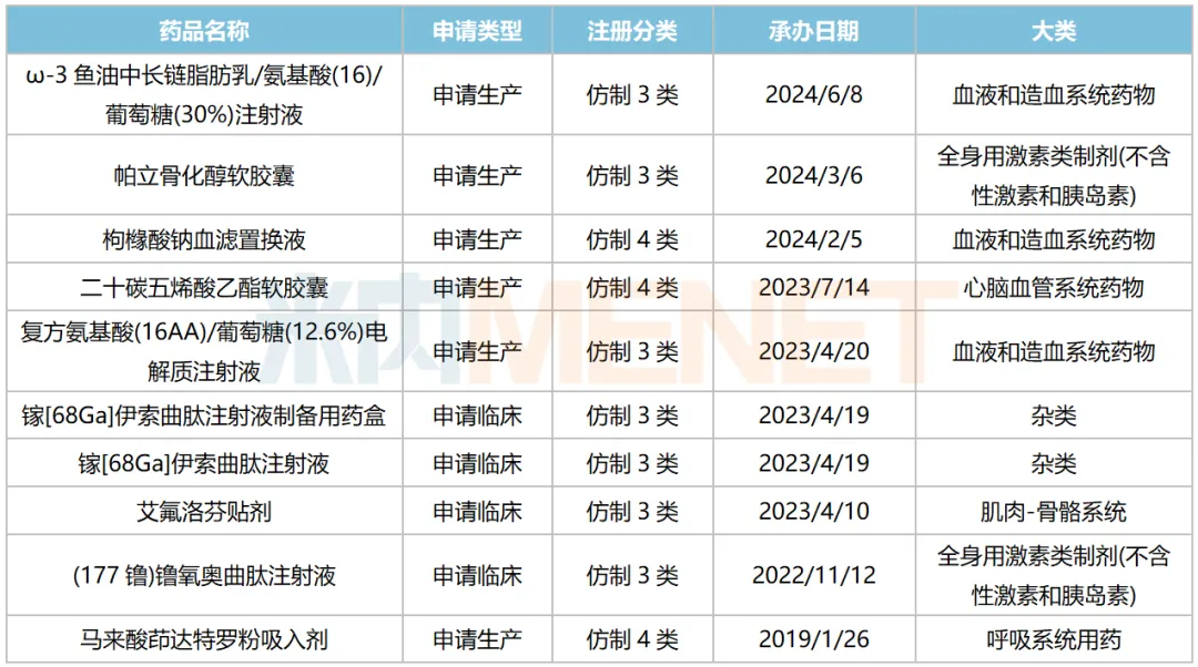 镓[68Ga]伊索曲肽注射液、镥[177Lu]氧奥曲肽注射液是恒瑞医药在核药领域布局的首对放射性精准诊疗产品;艾氟洛芬贴剂是公司首款以新注册分类申报的贴膏剂产品;ω-3鱼油中长链脂肪乳/氨基酸(16)/葡萄糖(30%)注射液为肠外营养三腔袋,复方氨基酸(16AA)/葡萄糖(12.6%)电解质注射液为肠外营养双室袋。