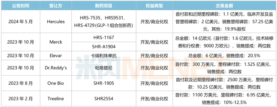 5月16日晚,恒瑞医药公告称,将具有自主知识产权的GLP-1组合创新药HRS-7535、HRS9531、HRS-4729在除大中华区以外的全球范围内开发、生产和商业化的独家权利有偿许可给美国Hercules公司。