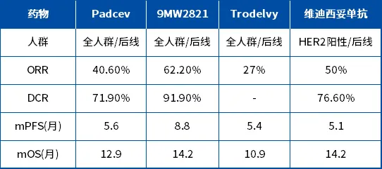 表1:不同靶点ADC药物尿路上皮癌后线疗效比较