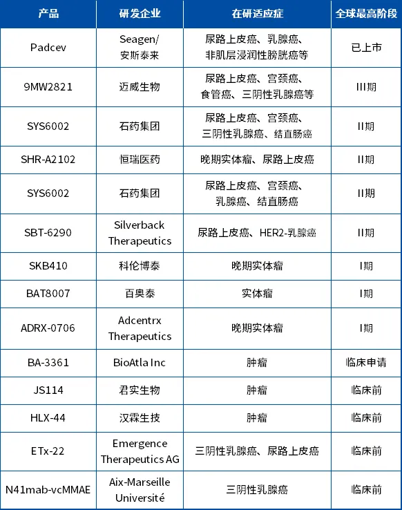 纵观全球,中国本土企业在管线布局的数量上已占据较大比重。除了尿路上皮癌的全线布局外,Padcev正在寻求多适应症领域的突破。