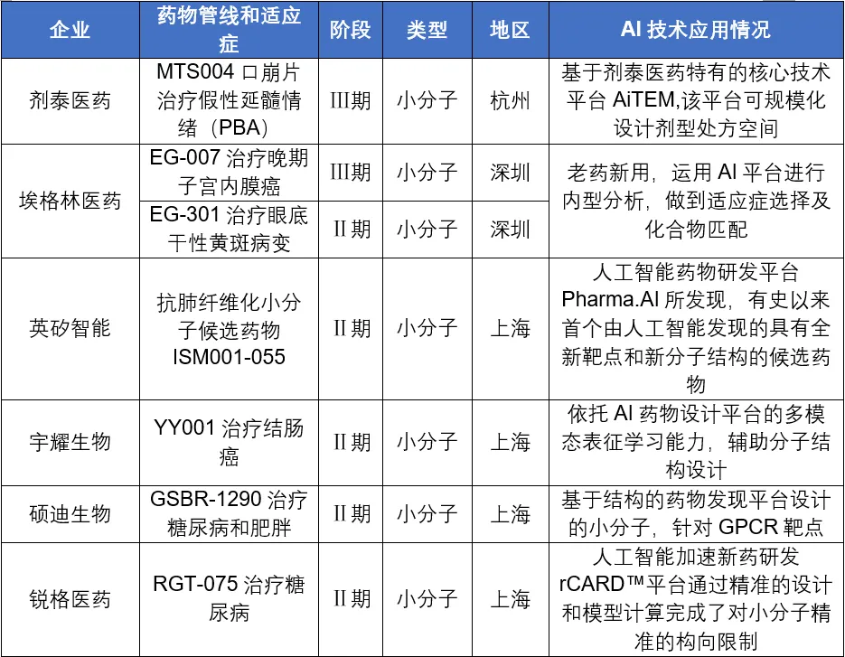 表1.全球进展较快的AI药物管线(截至2023年底)