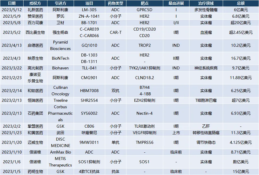 据药研网统计,2023年上半年出海项目共17项,已披露交易总金额达143亿美元。