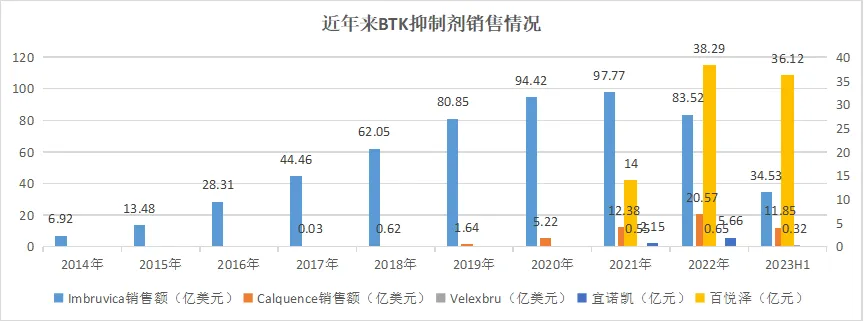 泽布替尼有效性及安全性方面均表现出显著优势,已纳入NCCN指南最高级别推荐,在全球范围内逐年放量,2023年销售额更是达到13亿美元,成为国内首个“十亿美元分子”。