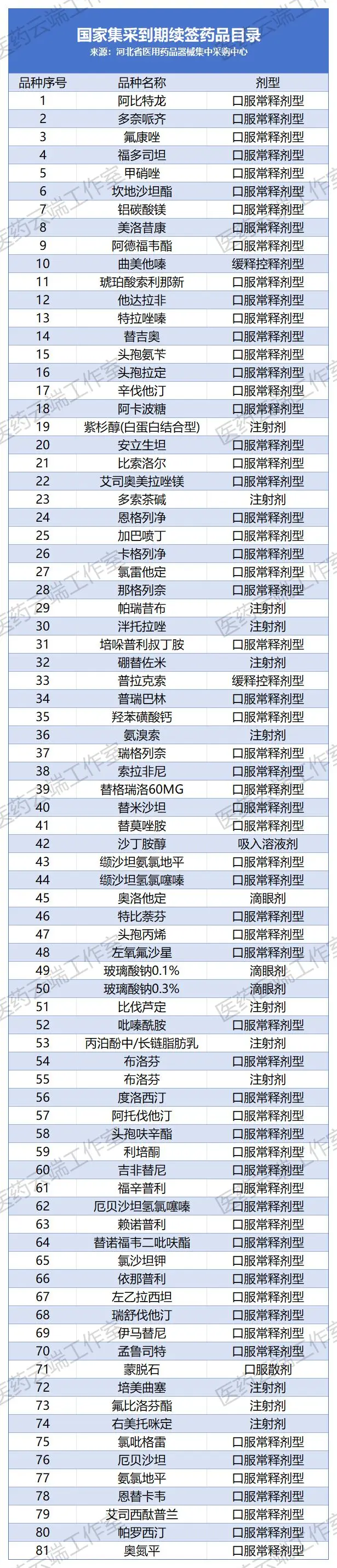 6月14日,河北省医用药品器械集中采购中心公布《河北省国家集采到期续签药品中选有关规定》,该省国家集采第一、二、四批部分药品(共81个品种,目录见文末表格)将于6月30日到期,为确保医疗机构使用的连续性和稳定性,保障中选价格较低药品持续供应我省,现将国家集采到期续签药品中选规定通知如下: