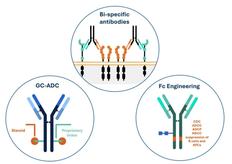 Santa Ana的SAB05 ADC项目采用了一种新的抗体-糖皮质激素偶联物技术。这种方法使该公司能够安全地利用糖皮质激素的长期疗效,同时绕过与使用此类药物相关的附带损害。