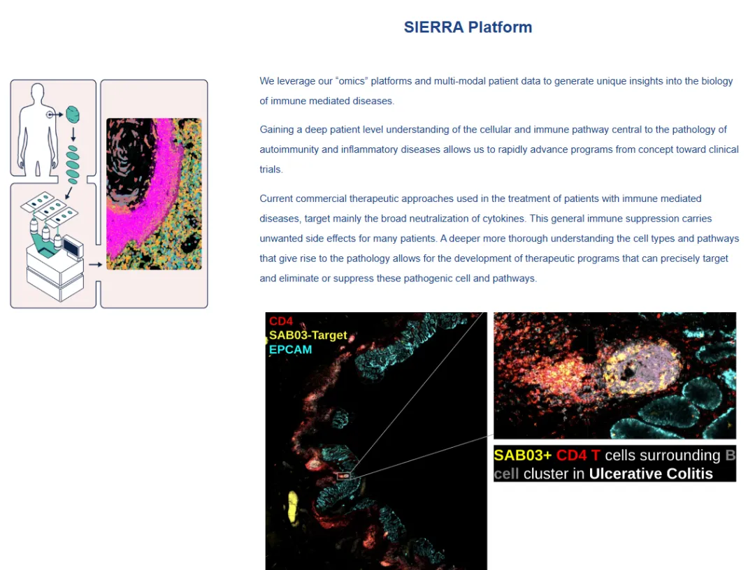 绝大多数自身免疫性疾病的生物制剂靶向细胞因子,细胞因子是信使,但不是致病因子。这些治疗方法也没有区分病变组织和健康组织。Santa Ana采用蛋白质组学、转录组学和基因组学方法来精确表征疾病特异性亚群,并仅在致病细胞类型上识别靶标,使健康细胞不受影响。这种方法解决了当前生物治疗的缺点,包括患者的异质性、反应的持久性和安全性。
