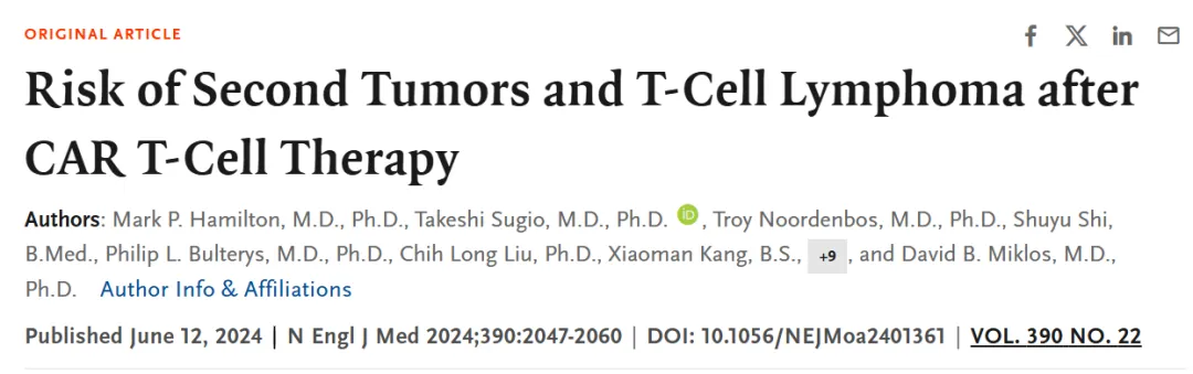2.Risk of secondary cancers after CAR-T cell therapy low, according to large Stanford Medicine study(nejm)