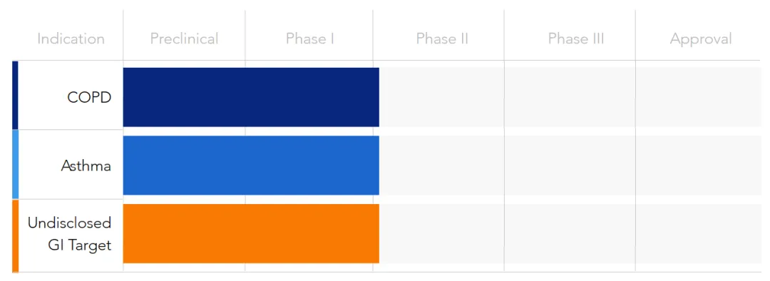 首席科学官Hector Ortega此前为Gossamer Bio的临床开发副总裁,更早的时候就职于葛兰素史克,任职临床开发高级医学总监,在其领导下将IL-5抗体Nucala推向上市,以及之前在罗氏参与IL-13抗体、IgE抗体的临床开发。