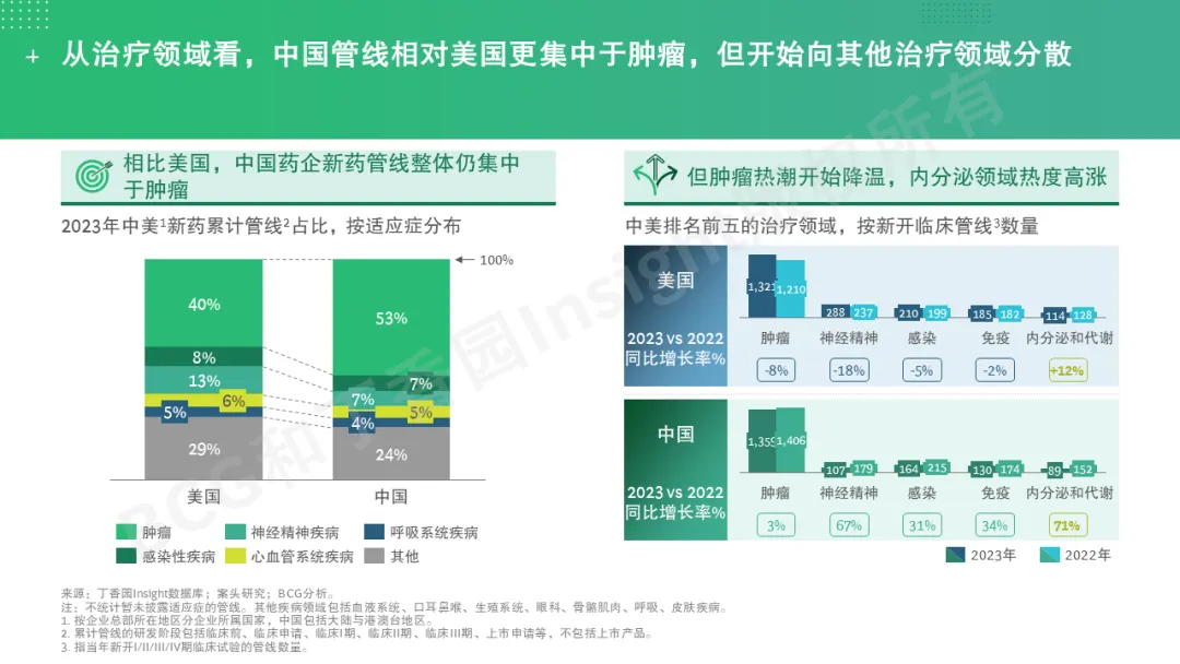 那么,在这股全球创新药研发浪潮中,中美在研发格局上有何异同?中国企业出海有哪些热门领域?在竞争日趋激烈的环境下,创新药企业如何战略布局以建立竞争优势?