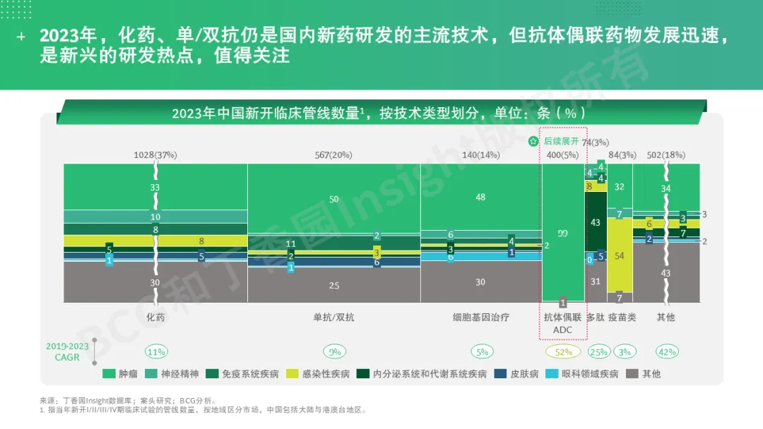 自2023年起,BCG医疗健康专项中国区团队与丁香园Insight团队合作,推出全球创新药研发格局洞察系列报告。首篇报告从疾病治疗领域出发,介绍了神经精神领域新药研发的格局与趋势。本篇则专注于抗体偶联药物,聚焦这一领域的崛起与未来展望,希望能对医药研发和投资界的同仁们有所启示。