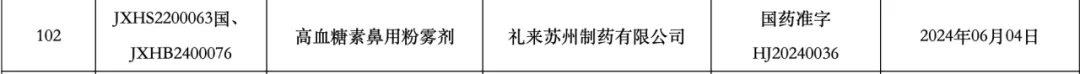 6 月 12 日,NMPA 官网显示,礼来制药的「高血糖素鼻用粉雾剂」国内获批上市,用于 4 岁及以上糖尿病患者严重低血糖治疗。