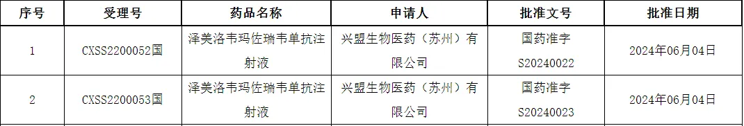 6 月 12 日,兴盟生物研制的 1 类创新药泽美洛韦玛佐瑞韦单抗注射液克瑞毕®取得 NMPA 颁发的药品注册批件,正式获批用于成人狂犬病病毒暴露者的被动免疫治疗。