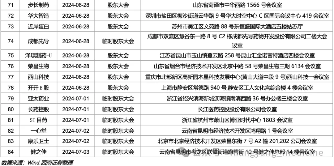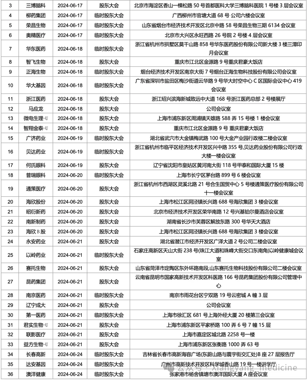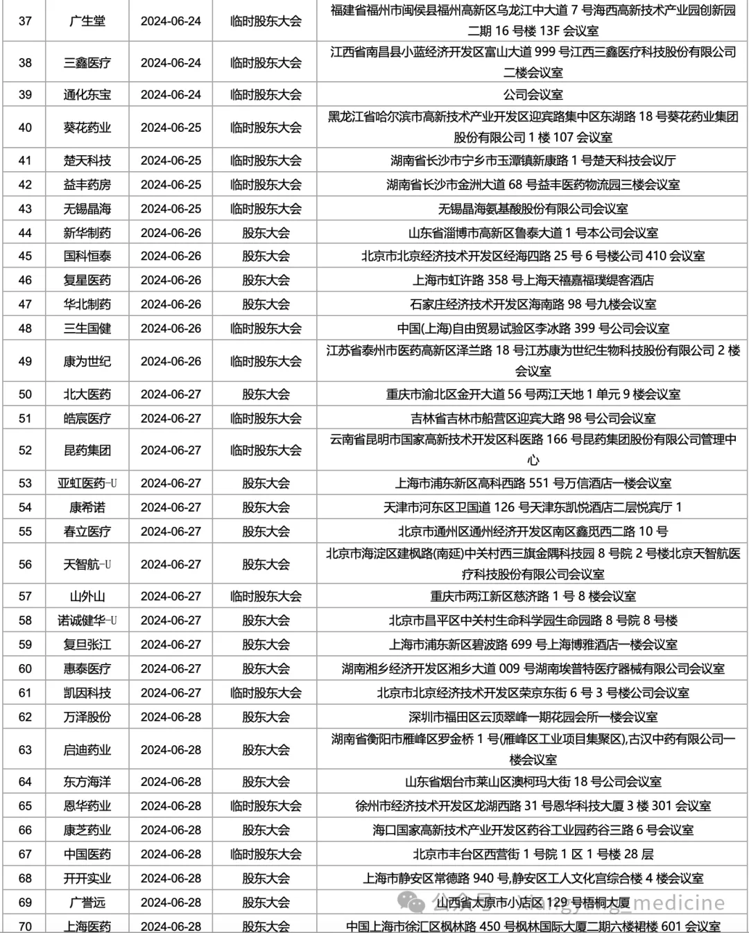 截至2024年6月14日公告信息,未来三个月拟召开股东大会的医药上市公司共有84家。